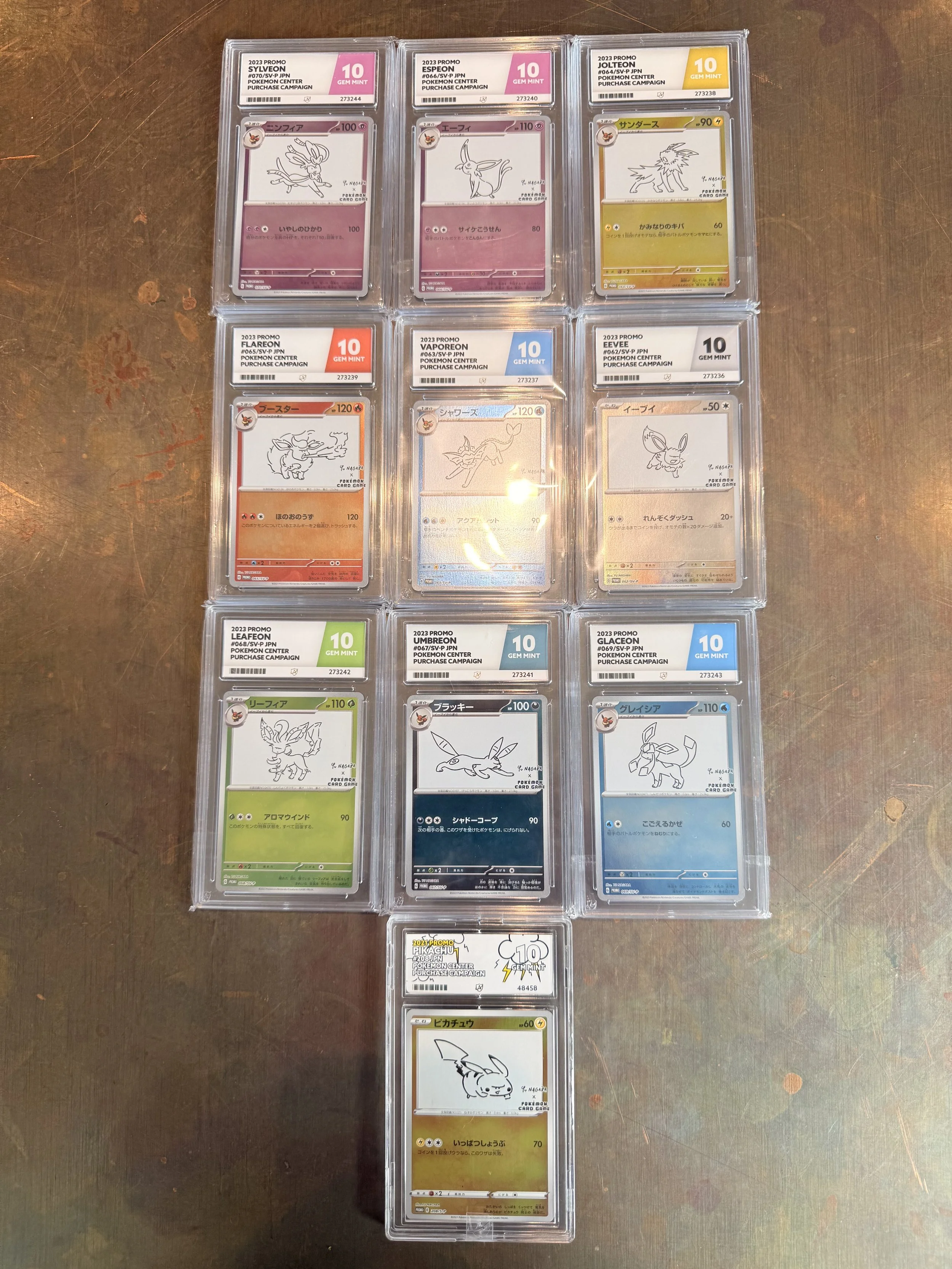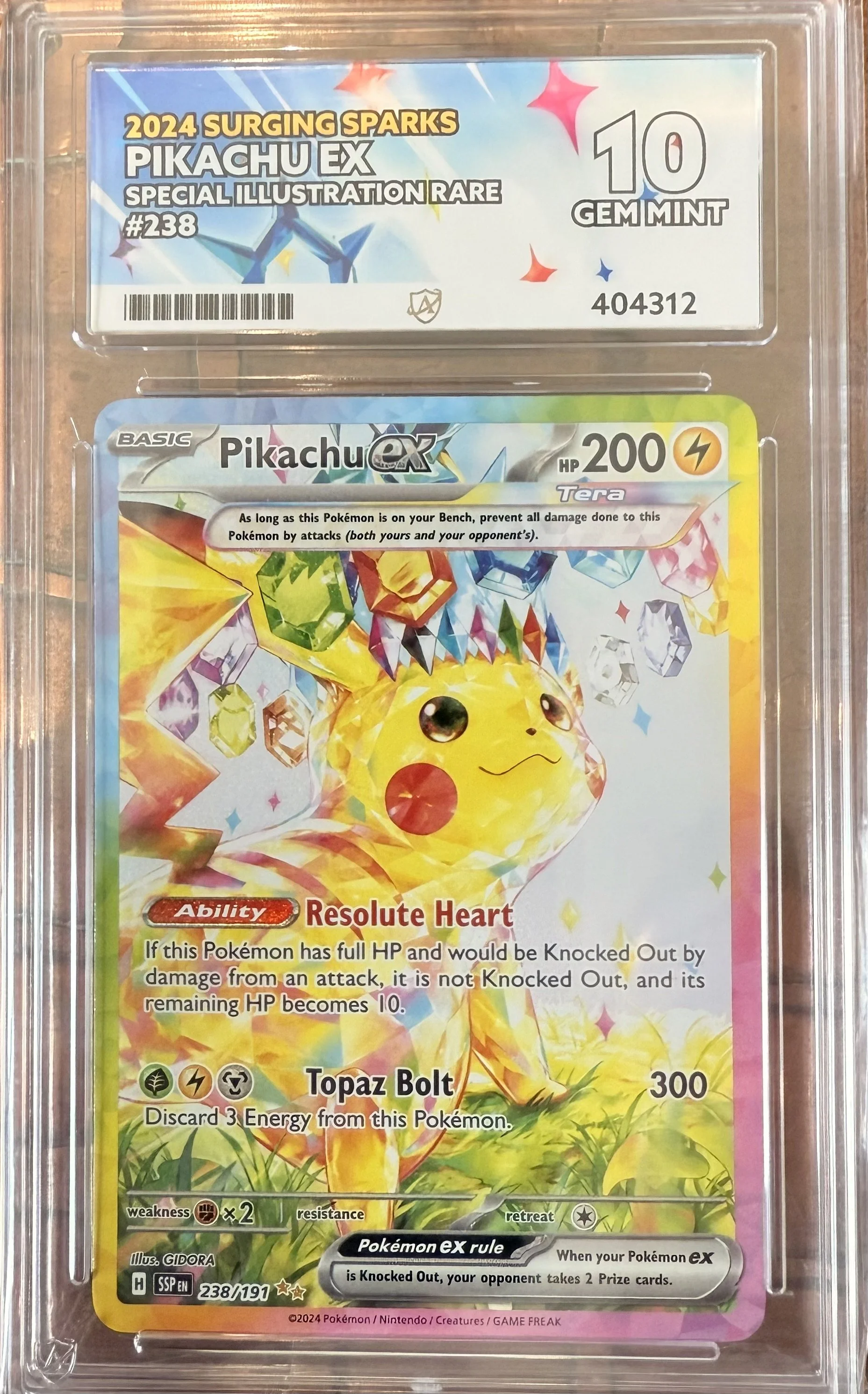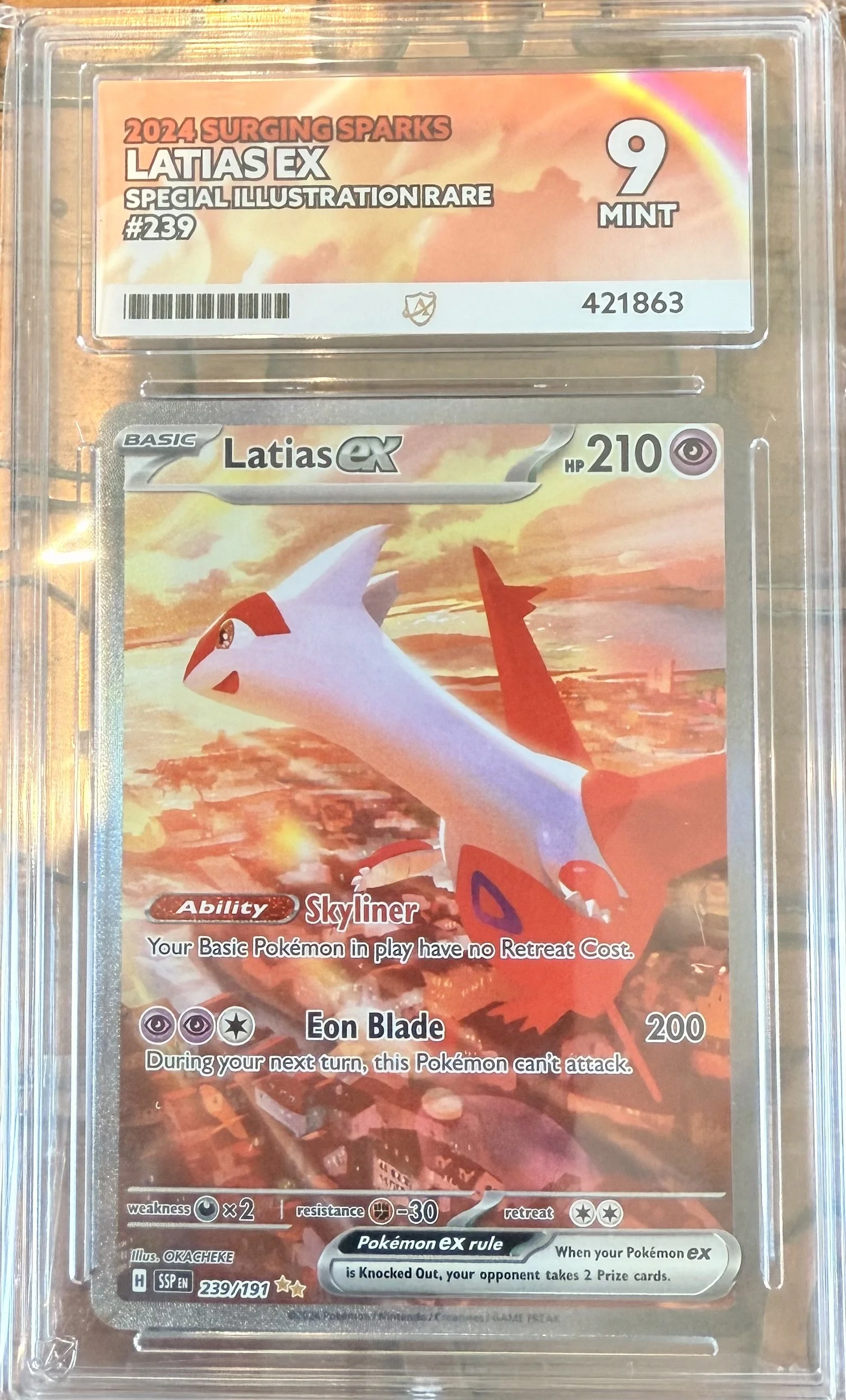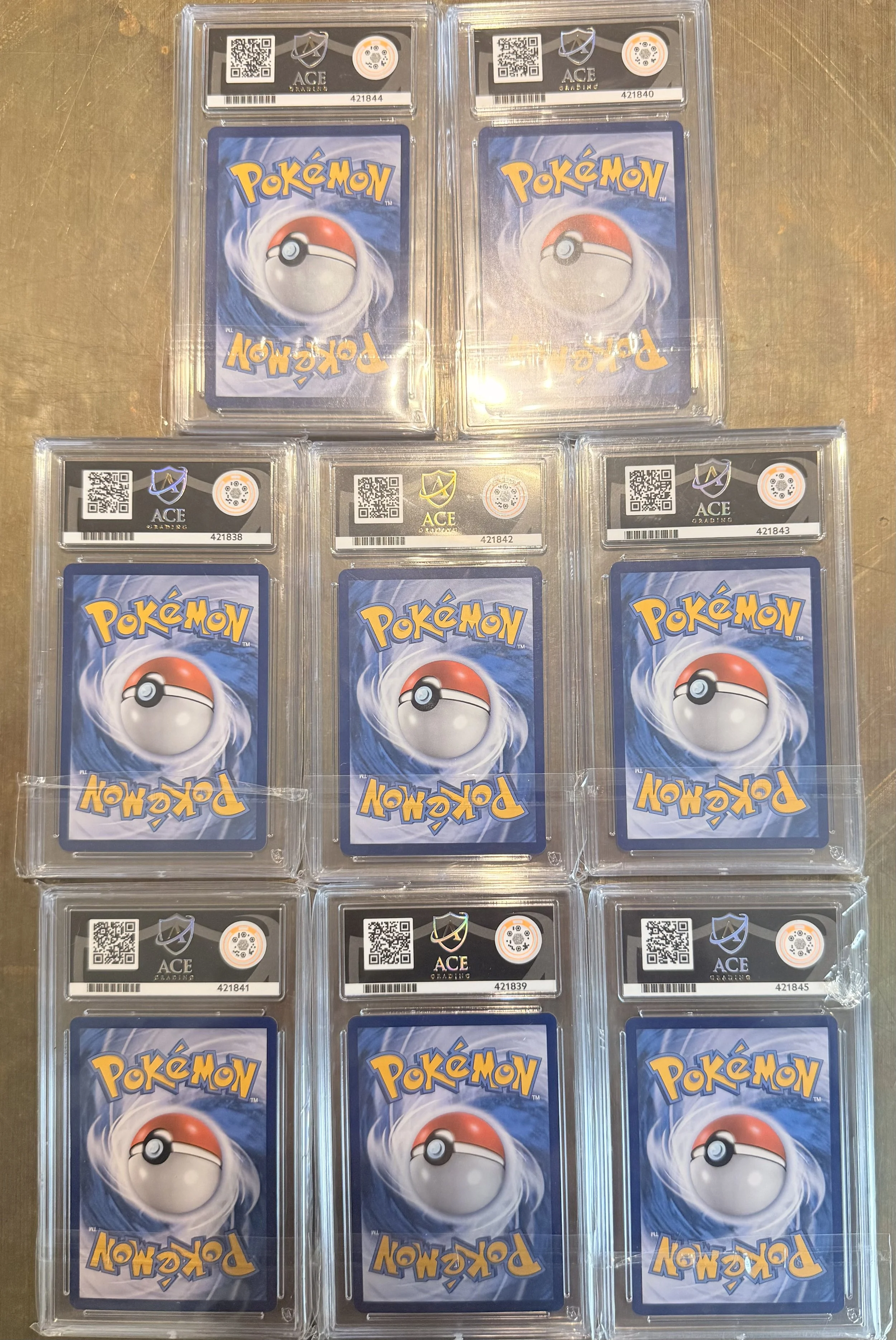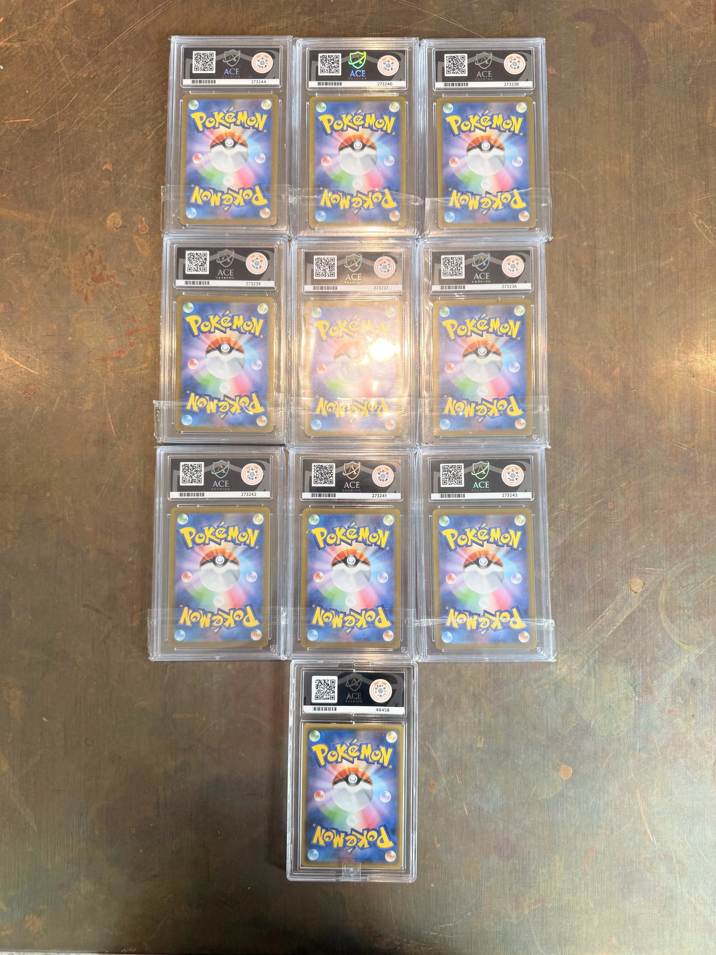 IRIS'S FIGHTING SPIRIT - JOURNEY TOGHETHER - ACE 10 £35.00 FLYGON EX - SURGING SPARKS - ACE 10 £35.00 ROCKET'S ZAPDOS - CELEBRATIONS - ACE 10 £50.00 CHARIZARD EX - 151 - ACE 10 £45.00 PIKACHU VMAX - VIVID VOLTAGE - ACE 10 £40.00 SEQUENTIAL SQUIRTLE / WARTORTLE / BLASTOISE - CLK JP - PSA 10'S £300.00 WAILORD - JOURNEY TOGETHER - ACE 10 £60.00 ARVEN'S GREEDENT - DESTINED RIVALS - ACE 10 £40.00 ARTICUNO - JOURNEY TOGETHER - ACE 10 £30.00 BEHEEYEM - BLACK BOLT - ACE 10 £70.00 EMBOAR - WHITE FLARE - ACE 10 £80.00 PIKACHU EX - SURGING SPARKS - ACE 10 £500.00 PIKACHU (YELLOW CHEEKS) - BASE - ACE 10 £200.00 MILOTIC EX - SURGING SPARKS - ACE 10 £200.00 GLACEON EX - PRISMATIC EVOLUTIONS - ACE 10 £350.00 CHARIZARD V - BRAVE & CHARMING STARS - ACE 10 £80.00 CHARIZARD - LOST ORIGIN - ACE 10 £82.00 PALAFIN EX - PRISMATIC EVOLUTIONS - ACE 10 £150.00 YU NAGABA PROMO'S - FULL SET - ACE 10'S £2,000.00 AERODACTYL V - LOST ORIGIN - ACE 10 £300.00 GENGAR EX - TEMPORAL FORCES - ACE 10 £160.00 CHARIZARD EX - PALDEAN FATES - ACE 10 £260.00 GARDEVOIR EX - SCARLET & VIOLET - ACE 10 £140.00 CHARIZARD HOLO - STORMFRONT - PSA 9 £1,200.00 RAICHU & ALOLAN RAICHU GX - GG END - ACE 9 £150.00 PRETEND COMEDIAN PIKACHU - OSAKA DX PROMO - ACE 9 £200.00 CHARIZARD & BRAIXEN GX - REMIXBOUT - ACE 9 £140.00 M LUCARIO EX - RISING FIST 1ST EDITION JPN - ACE 9 £150.00 CHARIZARD EX - OBSIDIAN FLAMES - ACE 9 £40.00 PIKACHU - GG END - ACE 9 £25.00 ANCIENT MEW - MOVIE PROMO - ACE 9 £100.00 ELECTRIKE - DESTINED RIVALS - ACE 9 £30.00 CHARIZARD & BRAIXEN GX - REMIXBOUT - ACE 9 £40.00 LATIAS EX - SURGING SPARKS - ACE 9 £120.00 LATIOS - SURING SPARKS - ACE 10 £35.00 KELDEO EX - COLD FLARE 1ST EDITION - ACE 9 £100.00 ZACIAN LV.X - BLACK STAR PROMO - ACE 9 £30.00 HYDREIGON EX - SURGING SPARKS - ACE 9 £50.00 ELGYEM - BLACK BOLT - ACE 9 £30.00 DARK BLASTOISE - TEAM ROCKET - ACE 8 £70.00 M CHARIZARD EX - EVOLUTIONS - ACE 8 £150.00 CHARIZARD & BRAIXEN GX - COSMIC ECLIPSE - ACE 8 £30.00 BANETTE - HIDDEN LEGENDS - ACE 8 £50.00 PONCHO WEARING PIKACHU - PROMO - ACE 8 £250.00 CHARIZARD - EVOLUTIONS - ACE 8 £100.00 DARK GYARADOS - TEAM ROCKET 1ST EDITION - ACE 7 £90.00 M HOUNDOOM EX - BREAKTHROUGH - ACE 7 £90.00 ROCKETS HITMONCHAN - GYM HEROES - ACE 7 £70.00 UMBREON - PREMIUM FILE PROMO - ACE 7 £70.00 DARK ALAKAZAM - TEAM ROCKET - ACE 7 £70.00 FULL INDONESIAN KFC PROMO SET £500.00 LATIOS GX - UNIFIED MINDS - RAW (MINT) £10.00 EEVEE - YU NAGABA - RAW (MINT) £45.00 ZEKROM EX - BLACK BOLT JPN - RAW (NEAR MINT) £250.00