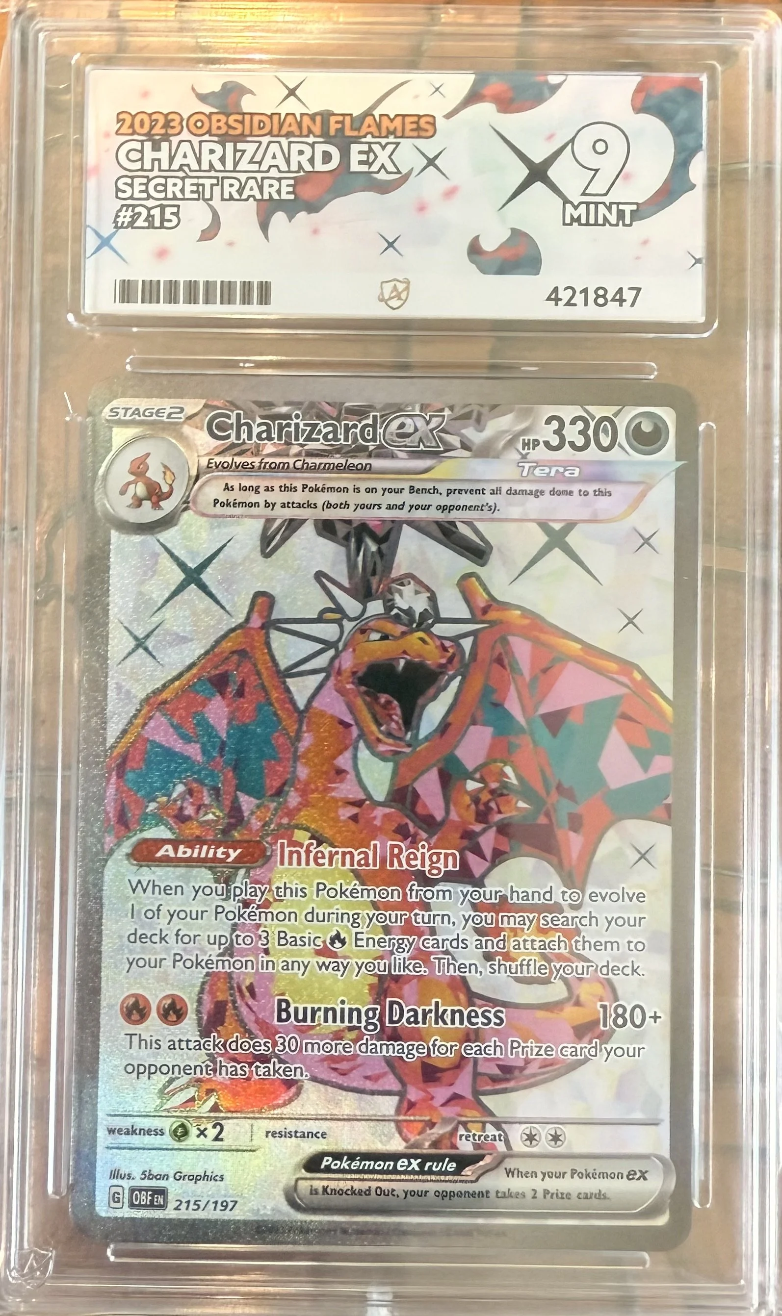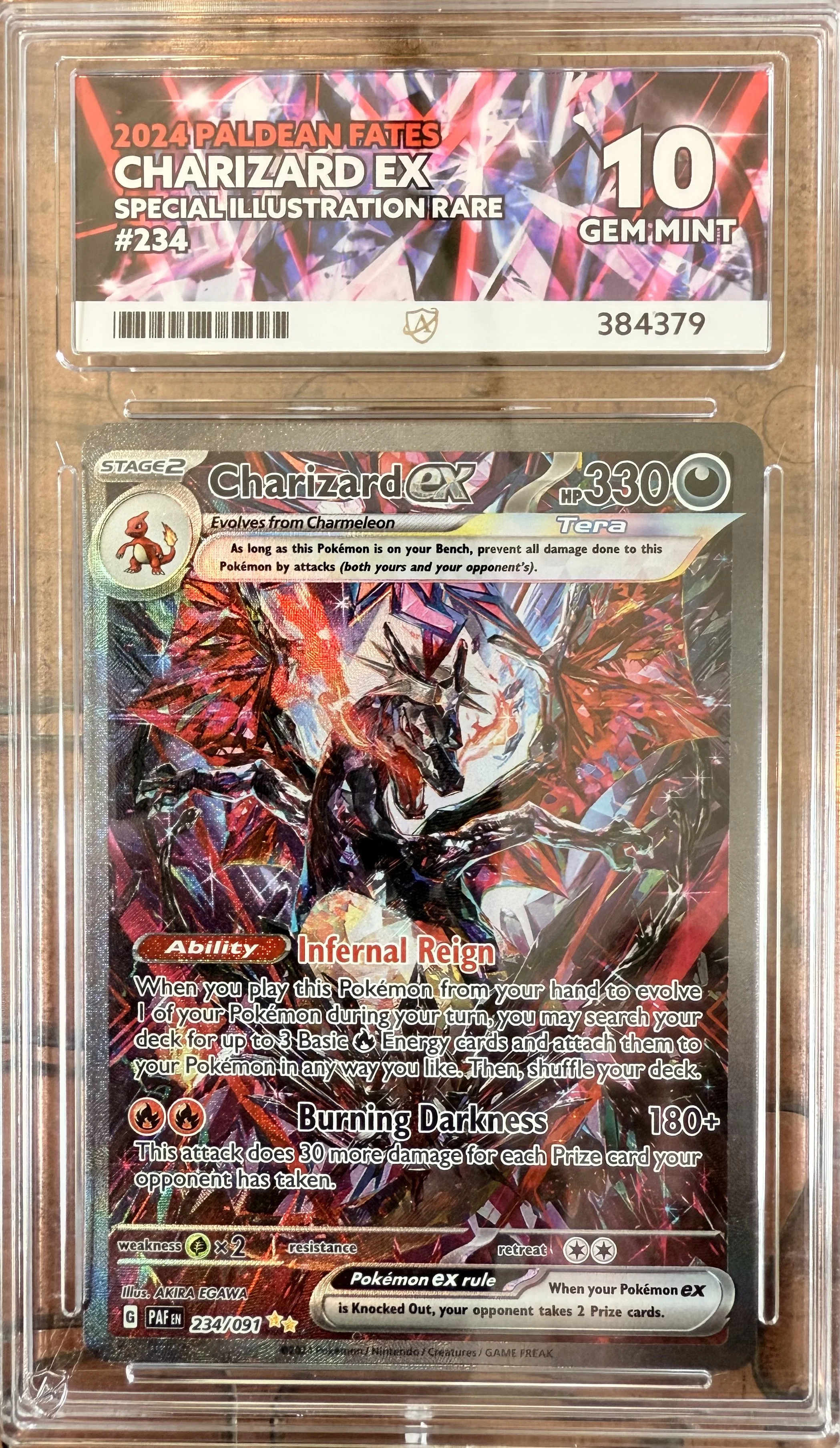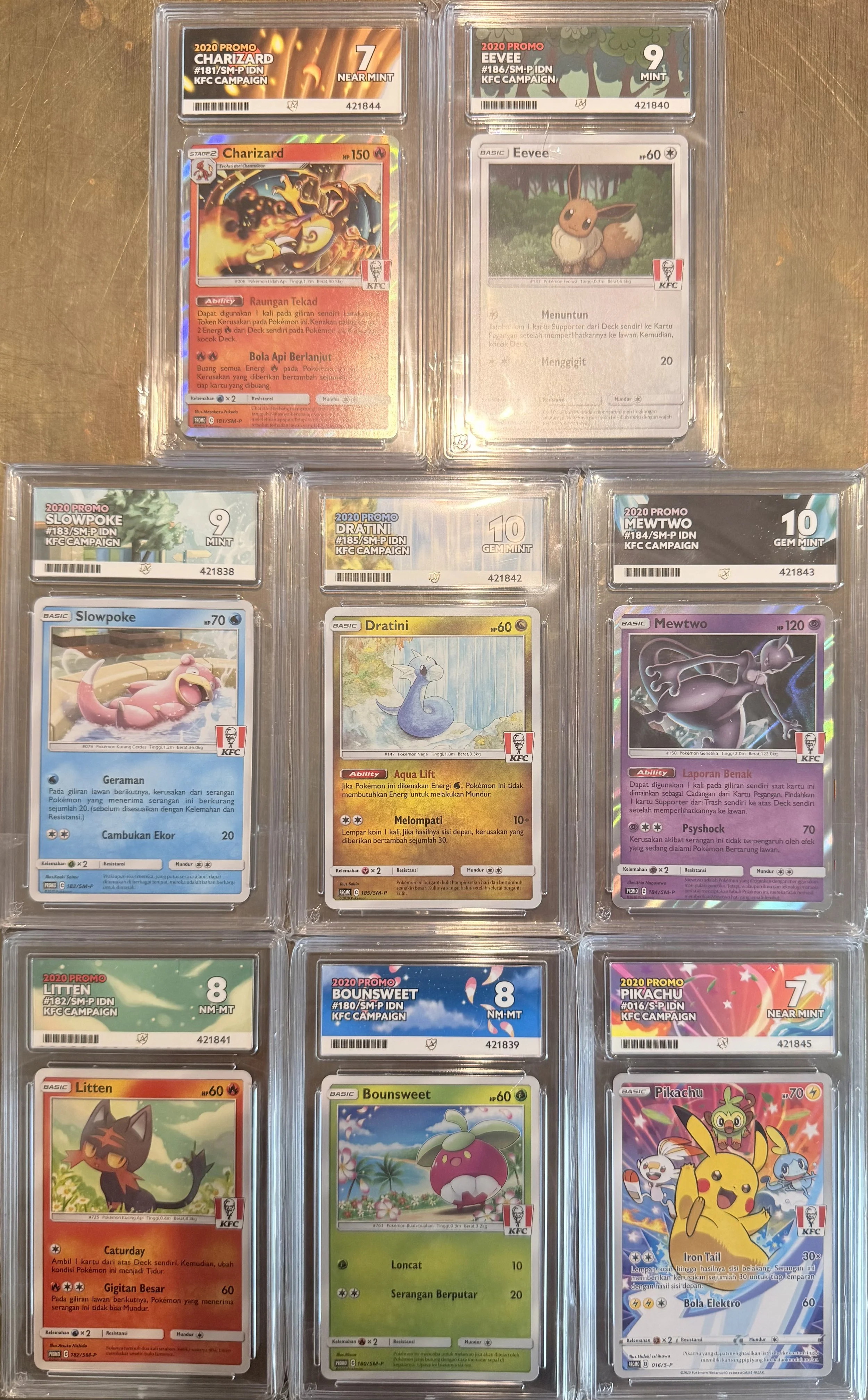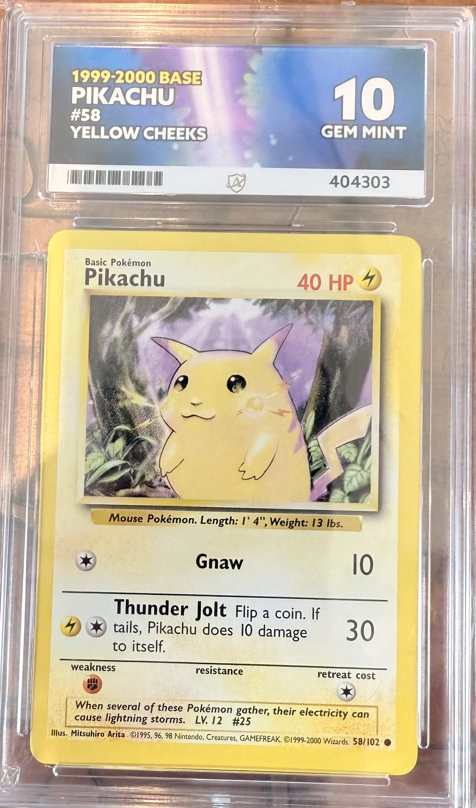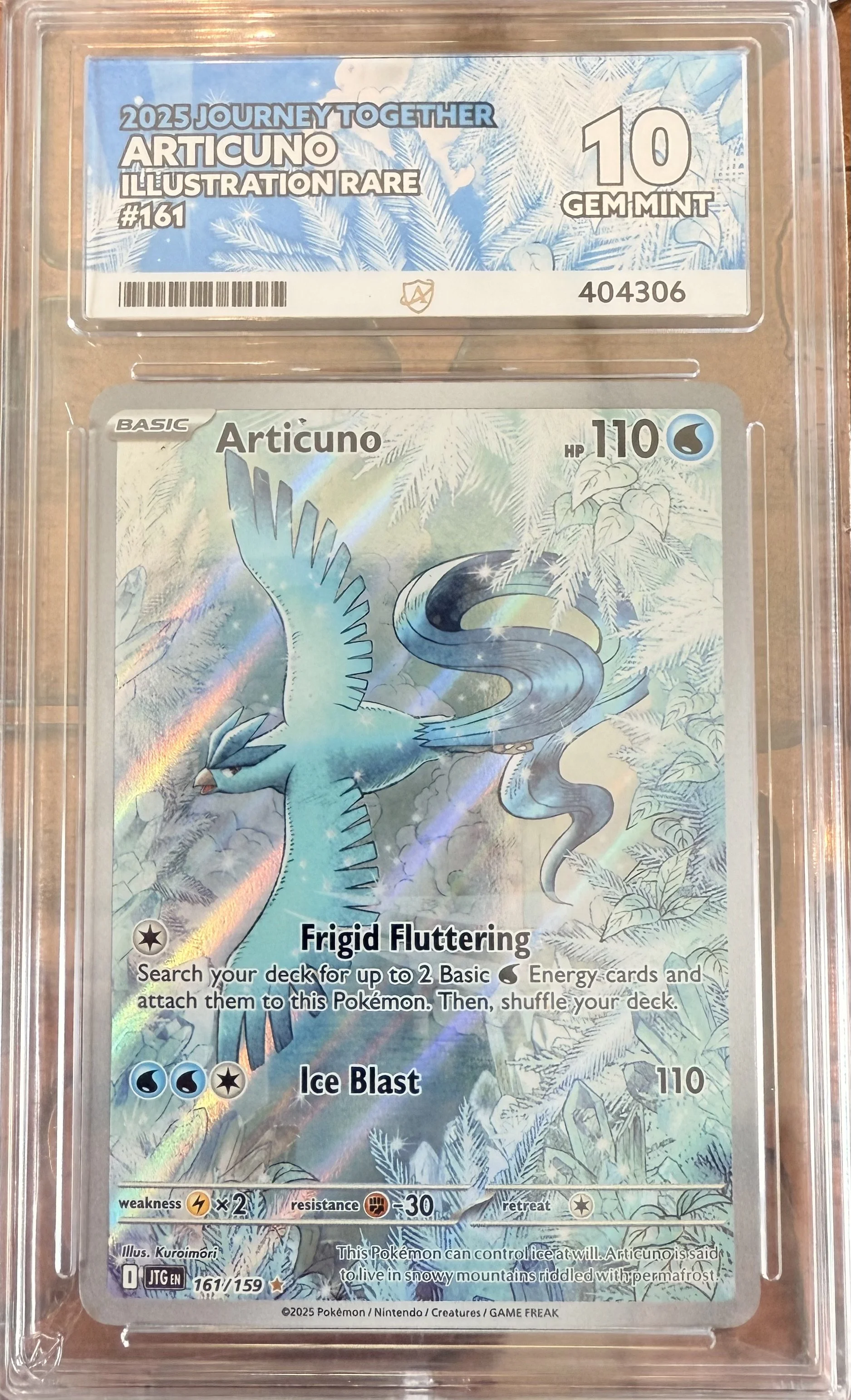 IRIS'S FIGHTING SPIRIT - JOURNEY TOGHETHER - ACE 10 £35.00 FLYGON EX - SURGING SPARKS - ACE 10 £35.00 ROCKET'S ZAPDOS - CELEBRATIONS - ACE 10 £50.00 CHARIZARD EX - 151 - ACE 10 £45.00 PIKACHU VMAX - VIVID VOLTAGE - ACE 10 £40.00 SEQUENTIAL SQUIRTLE / WARTORTLE / BLASTOISE - CLK JP - PSA 10'S £300.00 WAILORD - JOURNEY TOGETHER - ACE 10 £60.00 ARVEN'S GREEDENT - DESTINED RIVALS - ACE 10 £40.00 ARTICUNO - JOURNEY TOGETHER - ACE 10 £30.00 BEHEEYEM - BLACK BOLT - ACE 10 £70.00 EMBOAR - WHITE FLARE - ACE 10 £80.00 PIKACHU EX - SURGING SPARKS - ACE 10 £500.00 PIKACHU (YELLOW CHEEKS) - BASE - ACE 10 £200.00 MILOTIC EX - SURGING SPARKS - ACE 10 £200.00 GLACEON EX - PRISMATIC EVOLUTIONS - ACE 10 £350.00 CHARIZARD V - BRAVE & CHARMING STARS - ACE 10 £80.00 CHARIZARD - LOST ORIGIN - ACE 10 £82.00 PALAFIN EX - PRISMATIC EVOLUTIONS - ACE 10 £150.00 YU NAGABA PROMO'S - FULL SET - ACE 10'S £2,000.00 AERODACTYL V - LOST ORIGIN - ACE 10 £300.00 GENGAR EX - TEMPORAL FORCES - ACE 10 £160.00 CHARIZARD EX - PALDEAN FATES - ACE 10 £260.00 GARDEVOIR EX - SCARLET & VIOLET - ACE 10 £140.00 CHARIZARD HOLO - STORMFRONT - PSA 9 £1,200.00 RAICHU & ALOLAN RAICHU GX - GG END - ACE 9 £150.00 PRETEND COMEDIAN PIKACHU - OSAKA DX PROMO - ACE 9 £200.00 CHARIZARD & BRAIXEN GX - REMIXBOUT - ACE 9 £140.00 M LUCARIO EX - RISING FIST 1ST EDITION JPN - ACE 9 £150.00 CHARIZARD EX - OBSIDIAN FLAMES - ACE 9 £40.00 PIKACHU - GG END - ACE 9 £25.00 ANCIENT MEW - MOVIE PROMO - ACE 9 £100.00 ELECTRIKE - DESTINED RIVALS - ACE 9 £30.00 CHARIZARD & BRAIXEN GX - REMIXBOUT - ACE 9 £40.00 LATIAS EX - SURGING SPARKS - ACE 9 £120.00 LATIOS - SURING SPARKS - ACE 10 £35.00 KELDEO EX - COLD FLARE 1ST EDITION - ACE 9 £100.00 ZACIAN LV.X - BLACK STAR PROMO - ACE 9 £30.00 HYDREIGON EX - SURGING SPARKS - ACE 9 £50.00 ELGYEM - BLACK BOLT - ACE 9 £30.00 DARK BLASTOISE - TEAM ROCKET - ACE 8 £70.00 M CHARIZARD EX - EVOLUTIONS - ACE 8 £150.00 CHARIZARD & BRAIXEN GX - COSMIC ECLIPSE - ACE 8 £30.00 BANETTE - HIDDEN LEGENDS - ACE 8 £50.00 PONCHO WEARING PIKACHU - PROMO - ACE 8 £250.00 CHARIZARD - EVOLUTIONS - ACE 8 £100.00 DARK GYARADOS - TEAM ROCKET 1ST EDITION - ACE 7 £90.00 M HOUNDOOM EX - BREAKTHROUGH - ACE 7 £90.00 ROCKETS HITMONCHAN - GYM HEROES - ACE 7 £70.00 UMBREON - PREMIUM FILE PROMO - ACE 7 £70.00 DARK ALAKAZAM - TEAM ROCKET - ACE 7 £70.00 FULL INDONESIAN KFC PROMO SET £500.00 LATIOS GX - UNIFIED MINDS - RAW (MINT) £10.00 EEVEE - YU NAGABA - RAW (MINT) £45.00 ZEKROM EX - BLACK BOLT JPN - RAW (NEAR MINT) £250.00